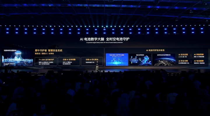 动力电池搭载AI电池数字大脑,为电池提供7*24h全天候守护,确保电池高安全、行车强动力以及电池长寿命。