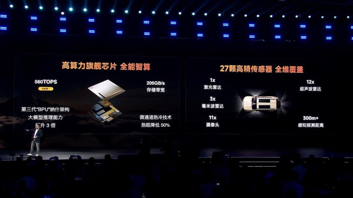 iCAR V27同样搭载了猎鹰700辅助驾驶系统,采用了560TOPS算力的辅助驾驶洗牌,搭载了包含1颗激光雷达在内的27颗辅助驾驶传感器。